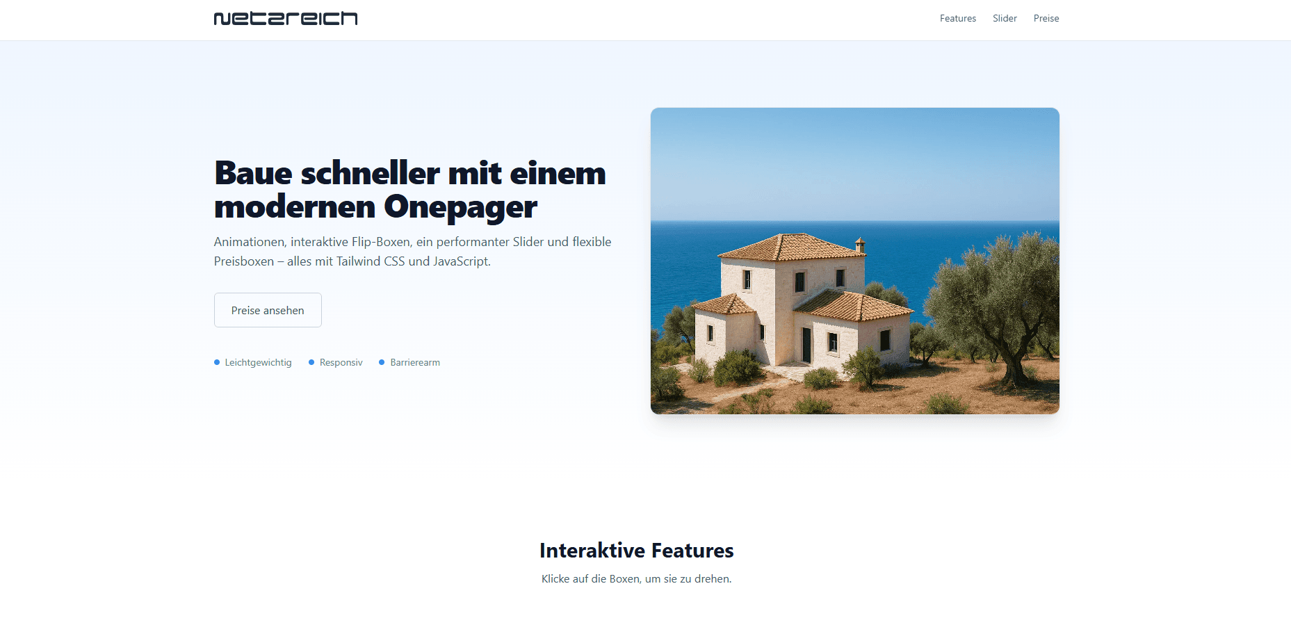 Eine Website muss nicht kompliziert oder teuer sein. Mit der 279 Euro Website von netzreich erhalten Unternehmen, Selbstständige und Kreative einen modernen Onepager zum fairen Preis. Das Grundlayout wird von netzreich bereitgestellt und anschließend von den Experten individuell aufbereitet. So entsteht eine moderne Website für einen starken Auftritt im Netz.