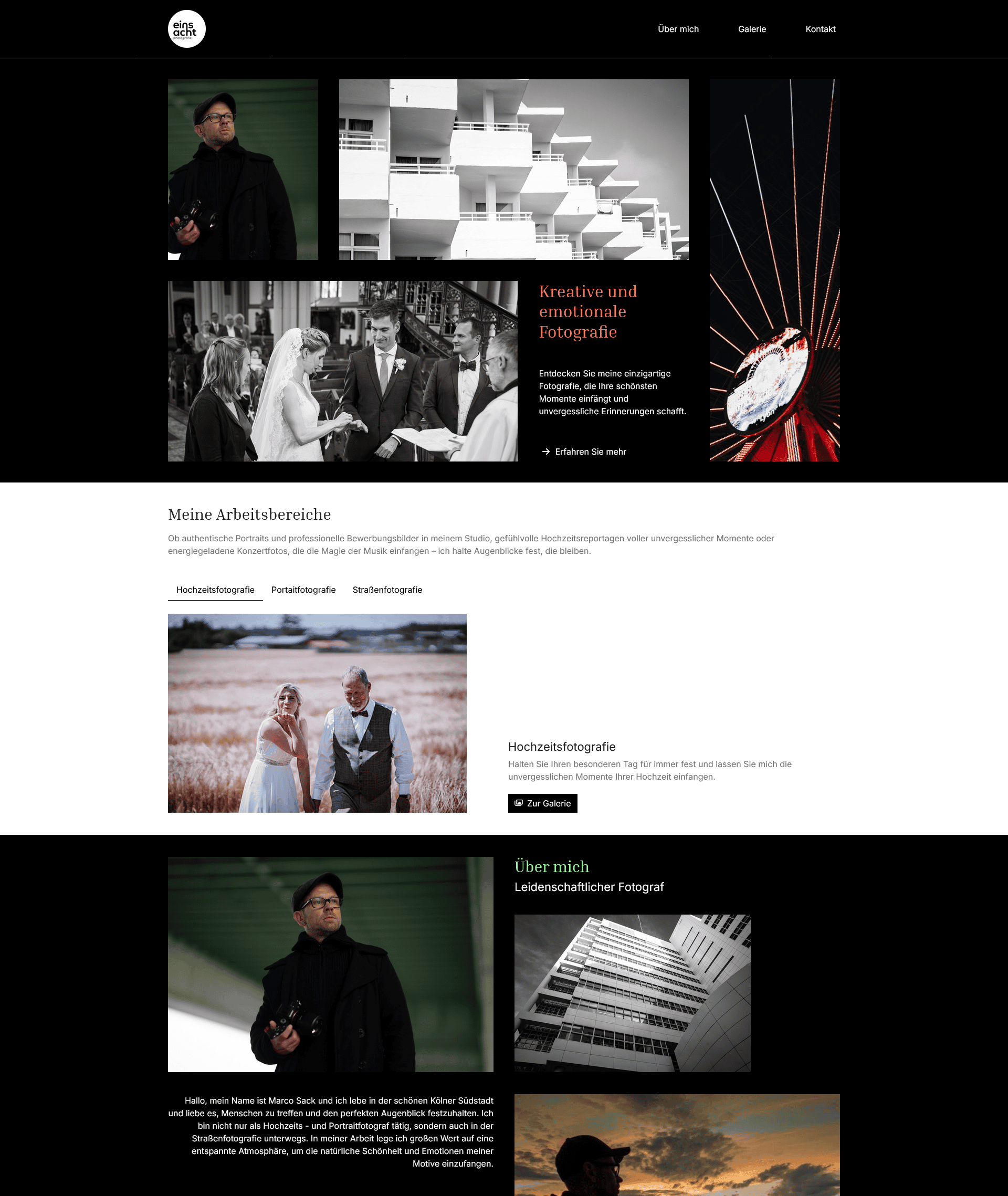 Für einsachtphotografie hat netzreich eine Website geschaffen, die den Bildern Raum gibt. Ein minimalistisches Design, eine intuitive Galerie und eine performante TYPO3-Umsetzung machen Fotografie digital erlebbar – ästhetisch, barrierefrei und technisch präzise.